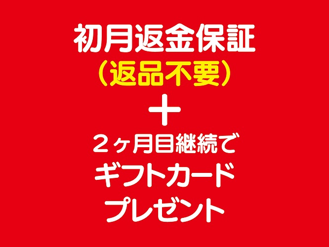 初⽉返⾦保証(返品不要)+2ヶ月目継続でギフトカード1,000円分プレゼント