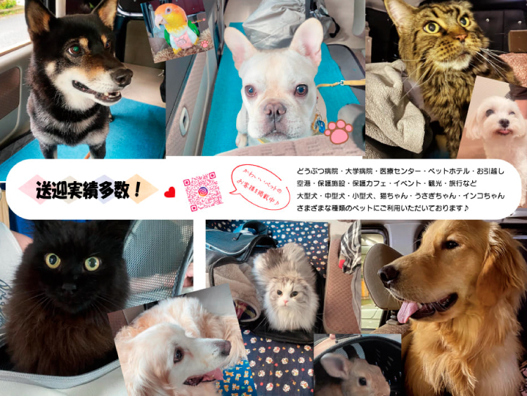 観光や旅行、イベント、里帰り、お引越し、ペットの通院、ペットホテル利用、空港利用など、さまざまなシーンでご利用して頂いております。